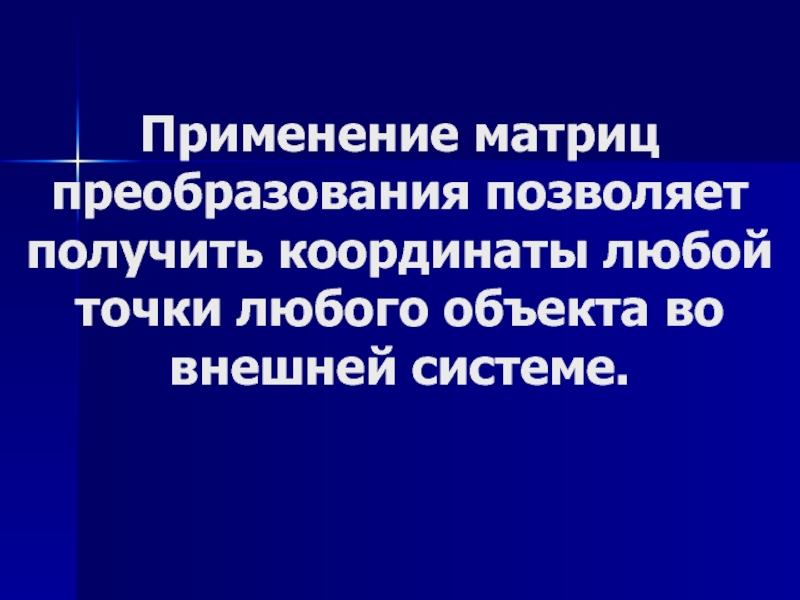 Слайд 15Применение матриц преобразования позволяет получить координаты любой точки любого объекта во