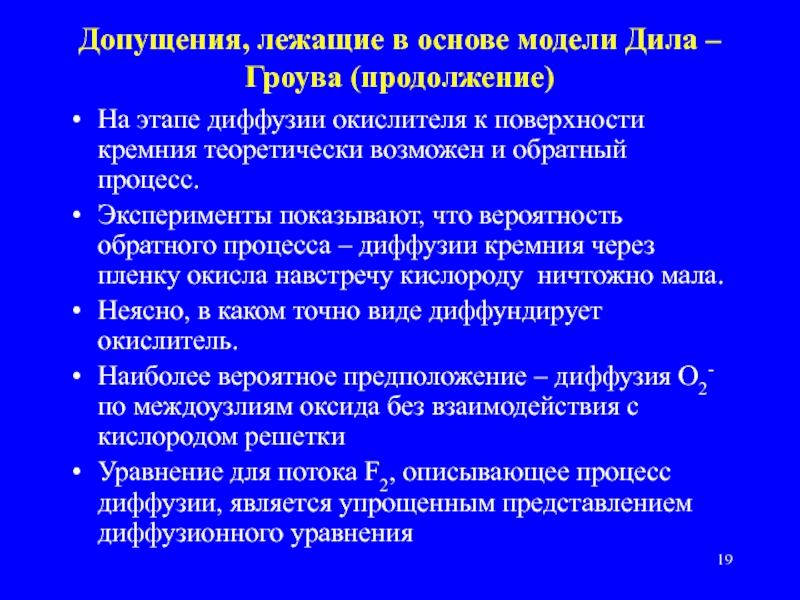 Слайд 19Допущения, лежащие в основе модели Дила – Гроува (продолжение)