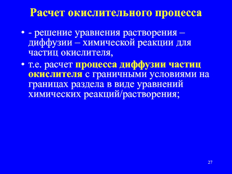 Слайд 27- решение уравнения растворения – диффузии – химической реакции для частиц