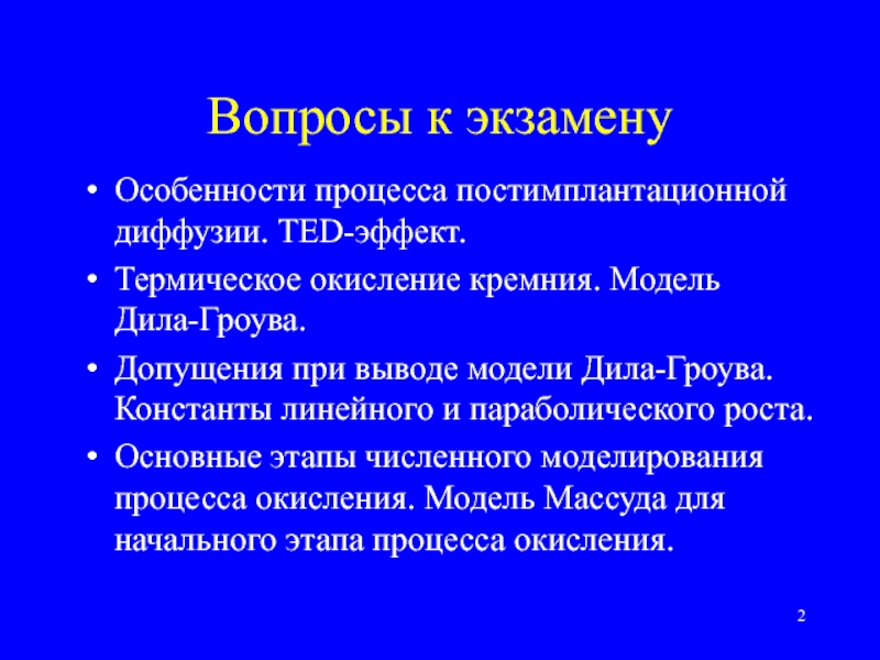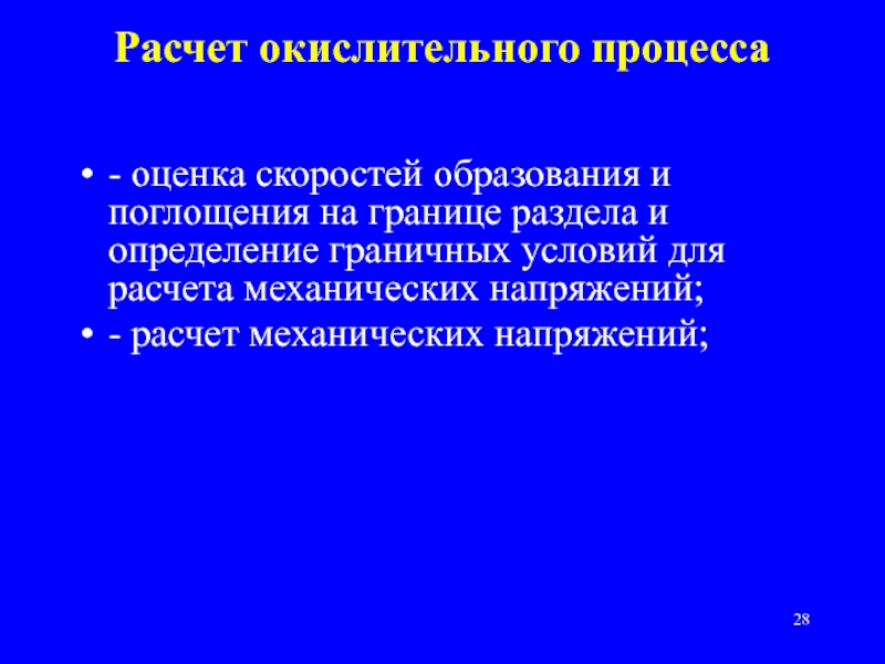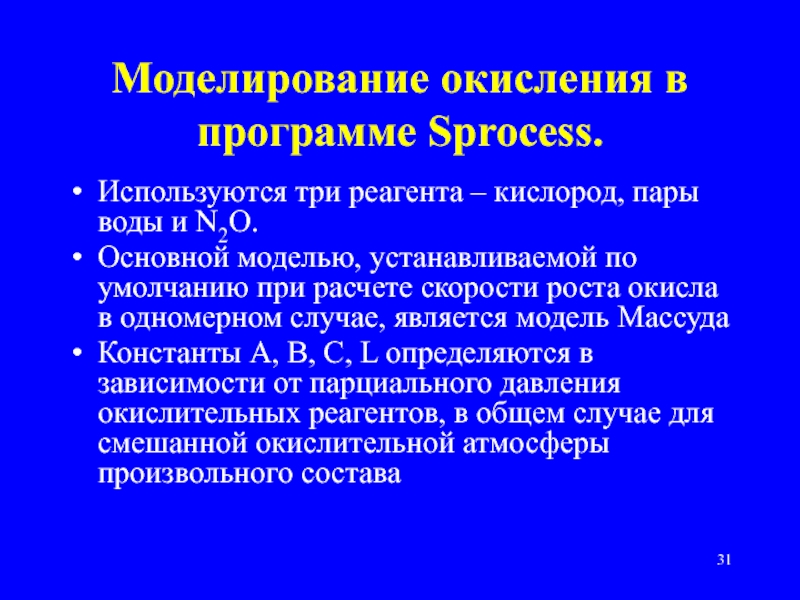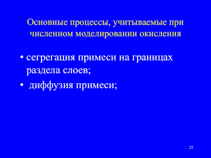 Слайд 25Основные процессы, учитываемые при численном моделировании окисления