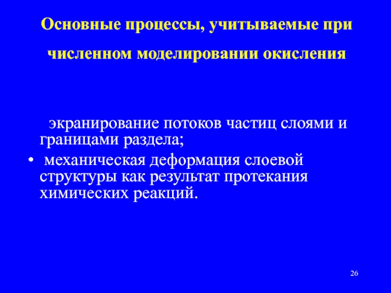 Слайд 26Основные процессы, учитываемые при численном моделировании окисления