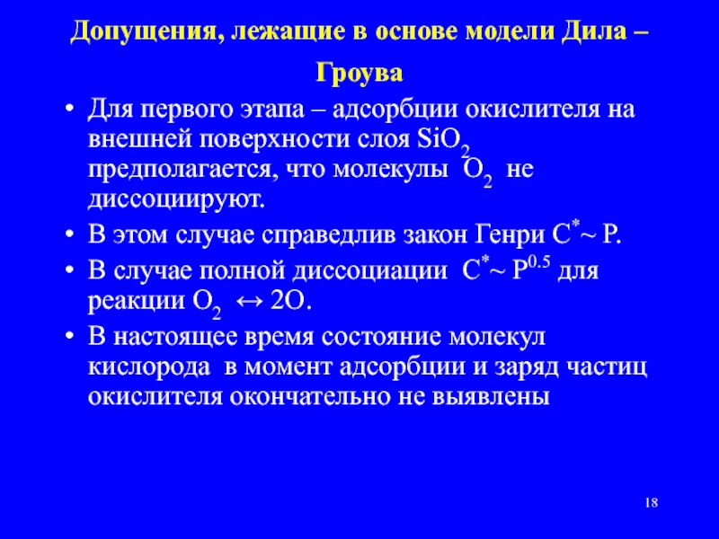 – адсорбции окислителя на внешней поверхности слоя SiO2 предполагается, что молекулы O2 не диссоциируют.