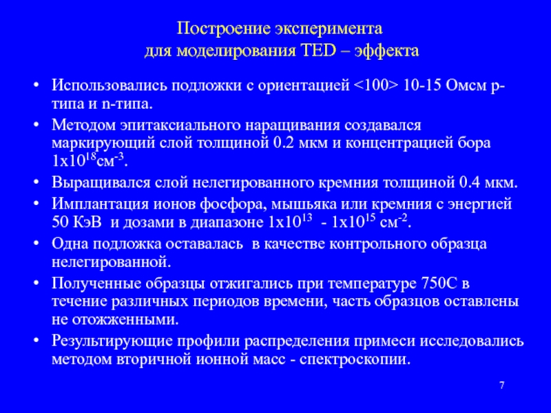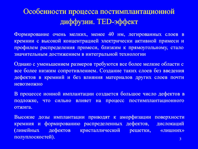 Слайд 3Особенности процесса постимплантационной диффузии. TED-эффект
