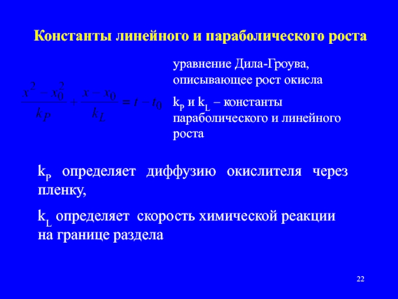 параболического роста B и константа линейного роста B/A зависят от температуры по закону Аррениуса.