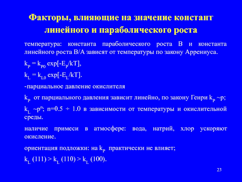 Слайд 23Факторы, влияющие на значение констант линейного и параболического роста