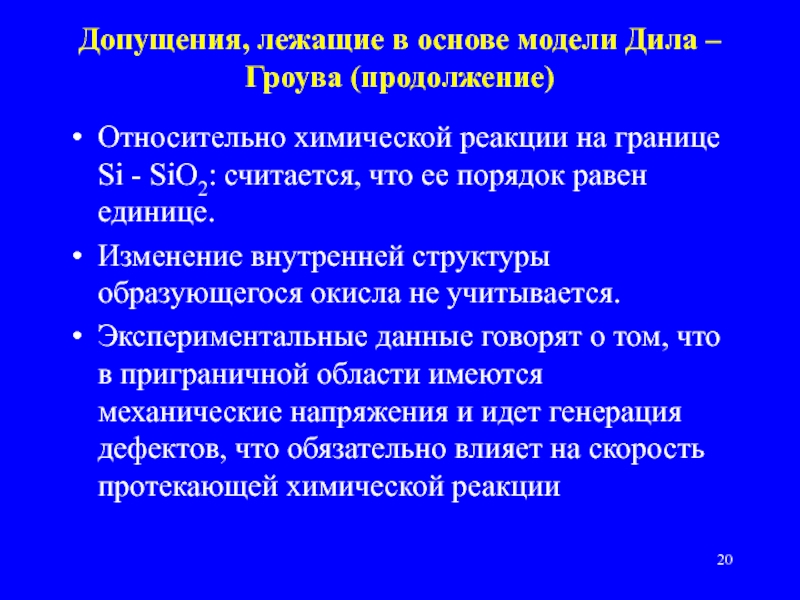 Слайд 20Допущения, лежащие в основе модели Дила – Гроува (продолжение)