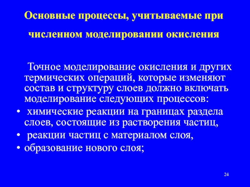 Слайд 24Основные процессы, учитываемые при численном моделировании окисления