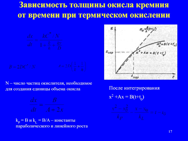 Слайд 17Зависимость толщины окисла кремния от времени при термическом окислении