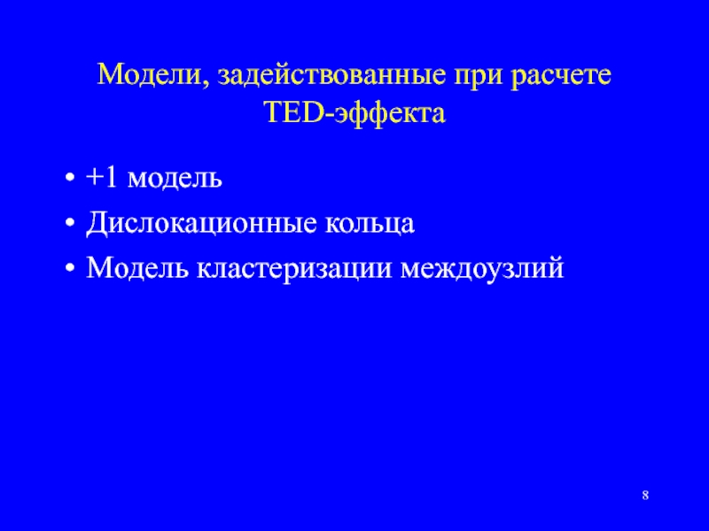 Слайд 8Модели, задействованные при расчете TED-эффекта