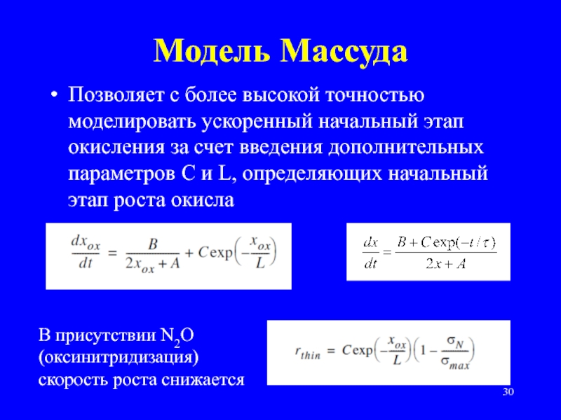 Основной моделью, устанавливаемой по умолчанию при расчете скорости роста окисла в одномерном случае, является модель Массуда