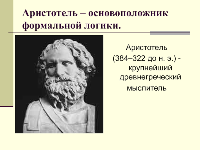 Слайд 4Аристотель – основоположник формальной логики