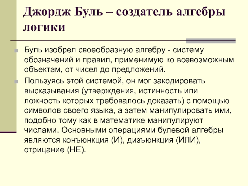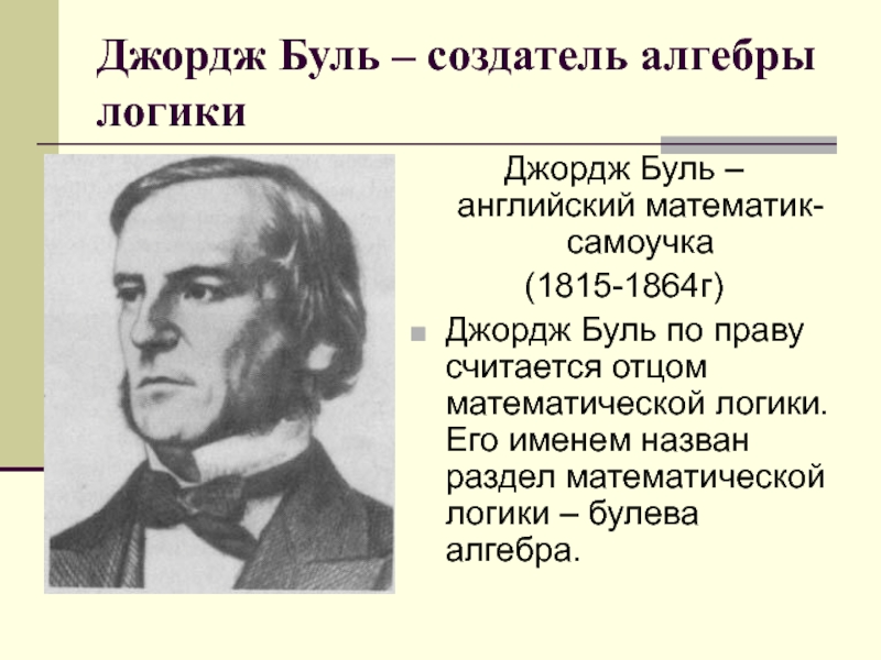 Слайд 8Джордж Буль – создатель алгебры логики