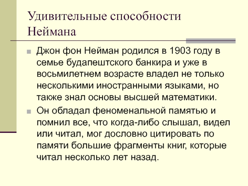 Слайд 15Удивительные способности Неймана