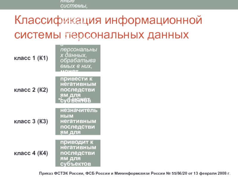 Приказ ФСТЭК России, ФСБ России и Мининформсвязи России № 55/86/20 от 13 февраля 2008 г.