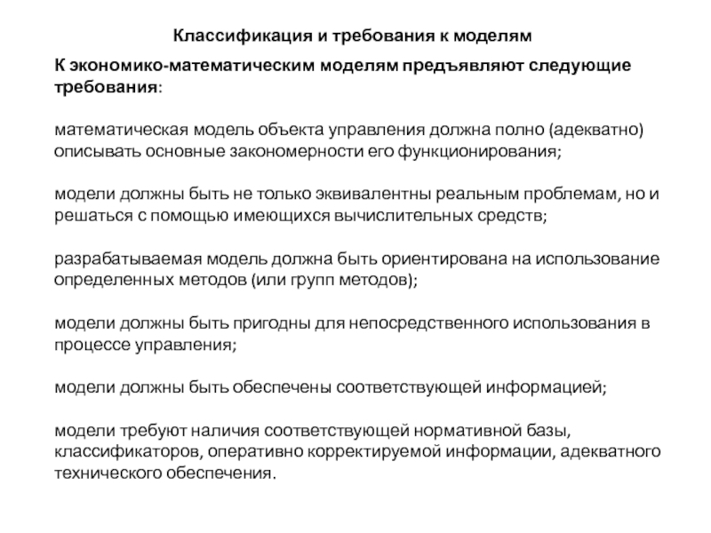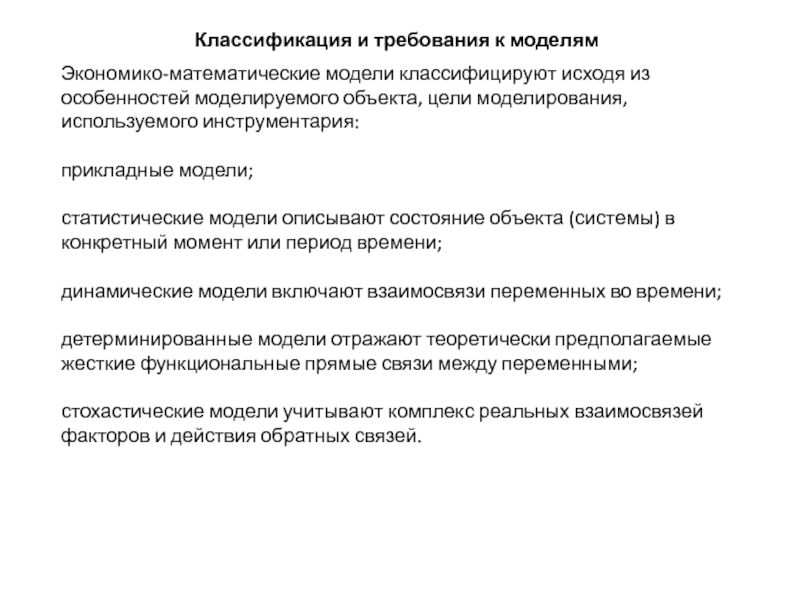 Экономико-математические модели классифицируют исходя из особенностей моделируемого