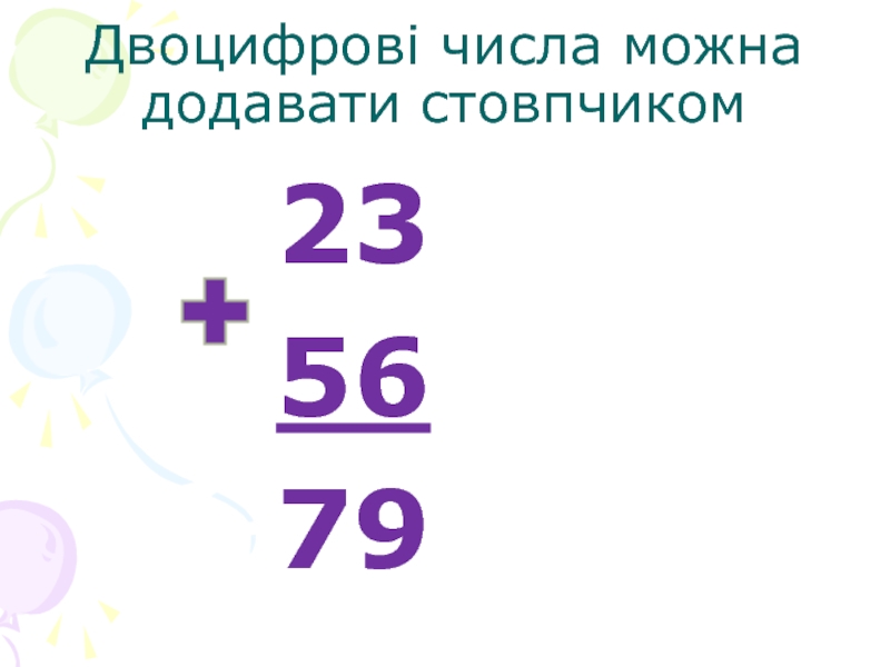 Слайд 5Двоцифрові числа можна додавати стовпчиком