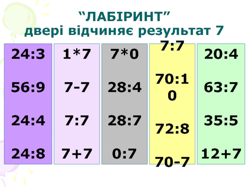 Слайд 3“ЛАБІРИНТ” двері відчиняє результат 7