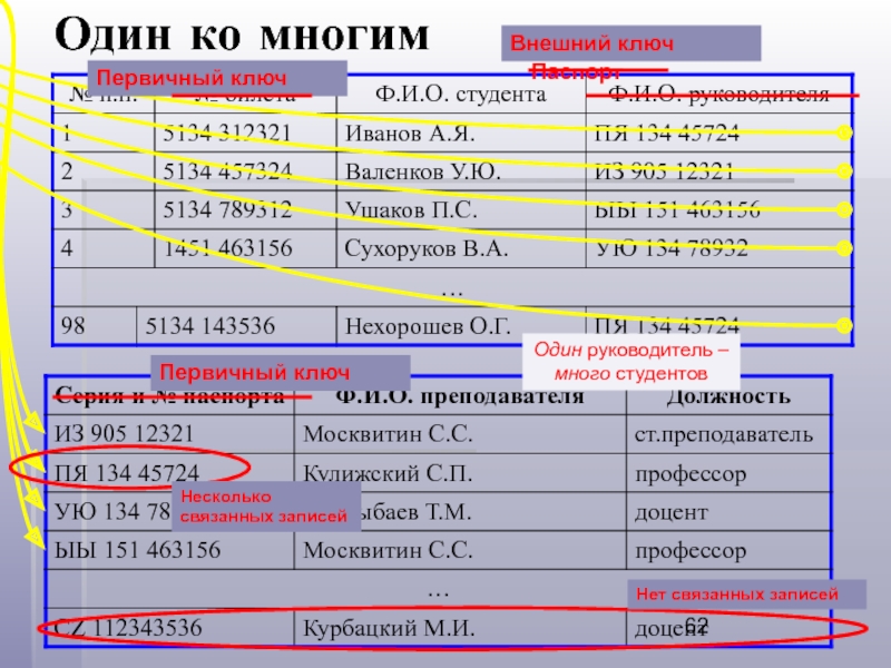 связи, индексы и пр.