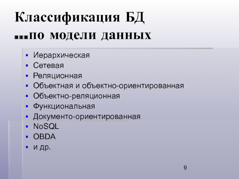 Слайд 9Классификация БД