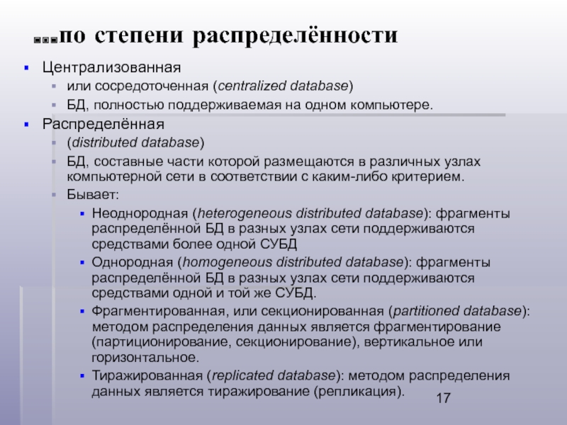 Слайд 17…по степени распределённости