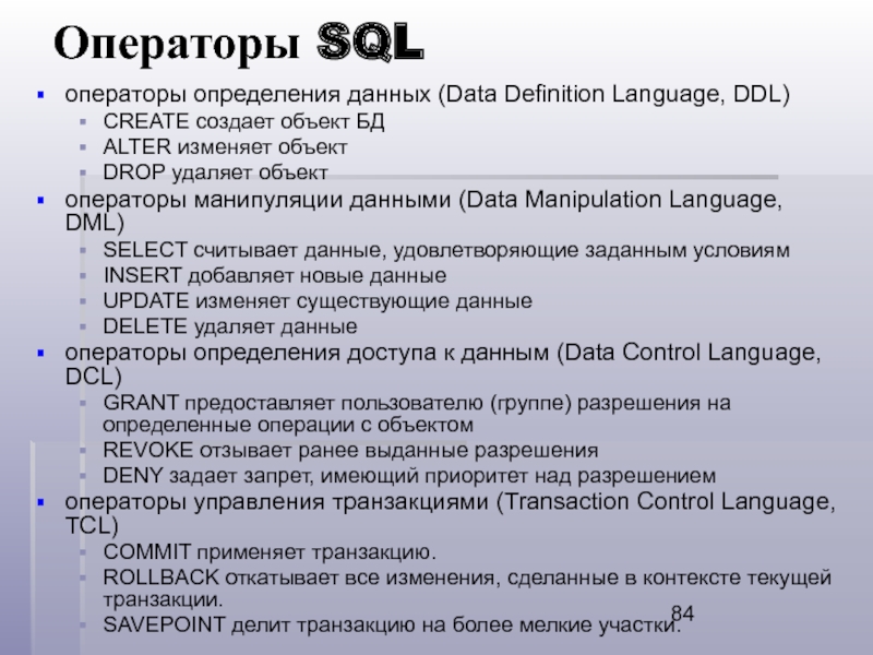 Слайд 84Операторы SQL