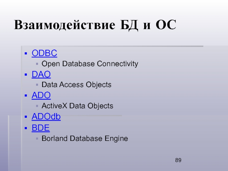 Слайд 89Взаимодействие БД и ОС