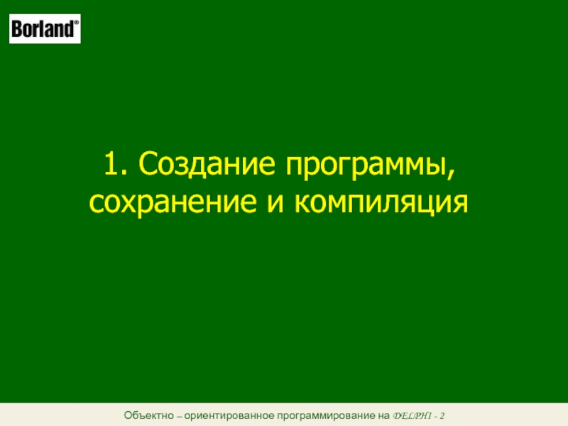 1. Запустим Delphi (Пуск – Все программы – Borland Delphi – Delphi 7). Автоматически при запуске Delphi создается новый проект – Project 1