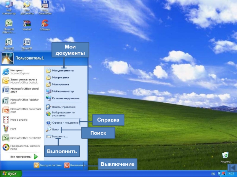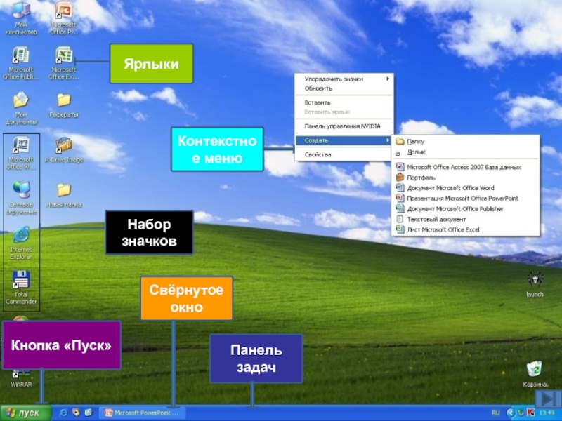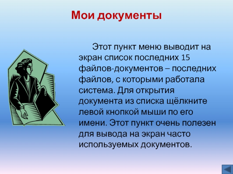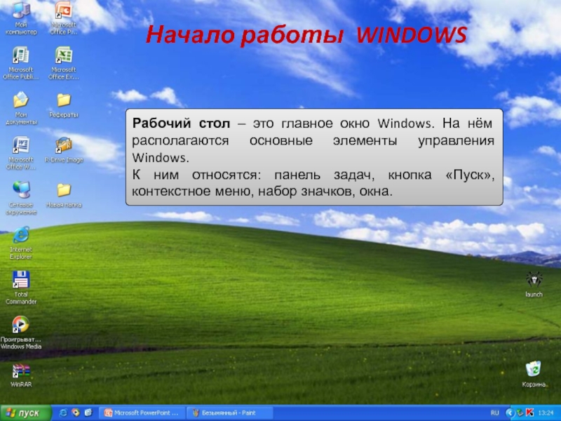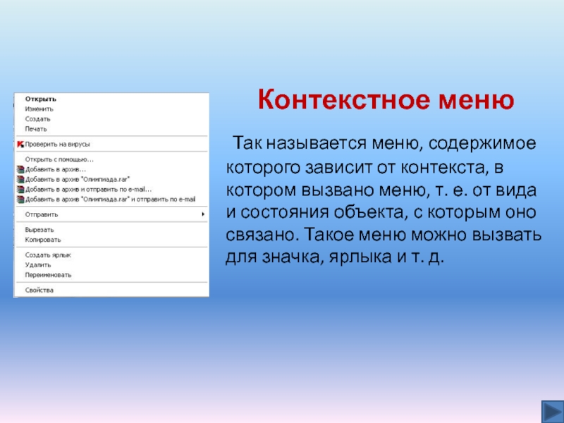 Меню окна располагается во 2-й строке окна. Число пунктов меню, как уже отмечалось, и их имена могут меняться в разных окнах.