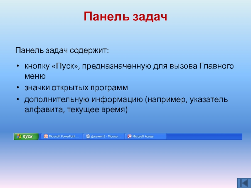 Панель инструментов размещается ниже меню окна. С помощью команды /Вид / Панель инструментов/ её можно удалять из окна и вызывать вновь.
