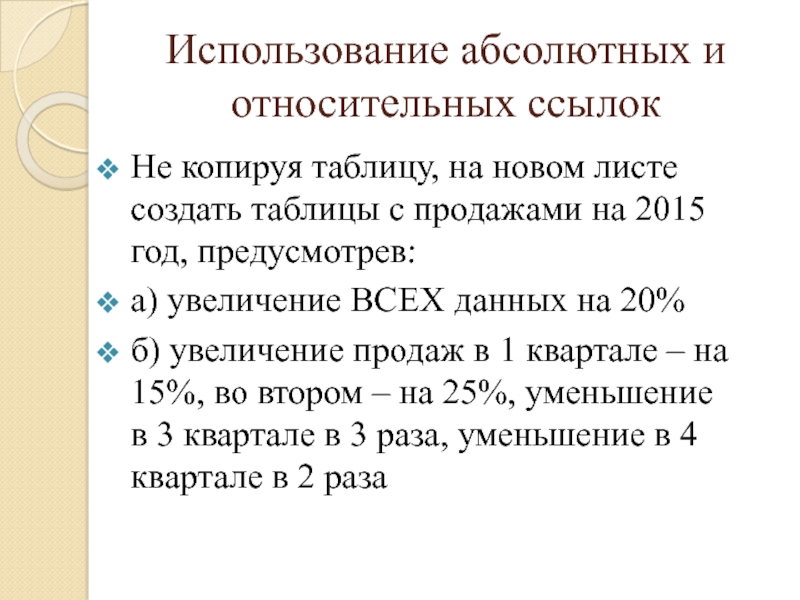Слайд 22Использование абсолютных и относительных ссылок