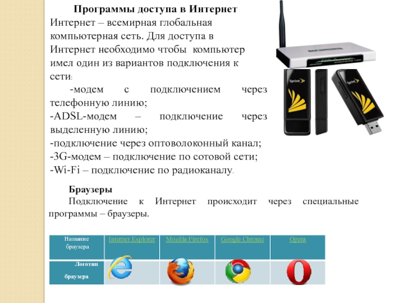 Подключение к Интернет происходит через специальные программы – браузеры.