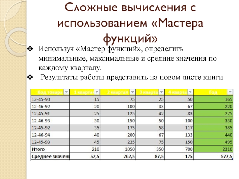 Слайд 21Сложные вычисления с использованием «Мастера функций»