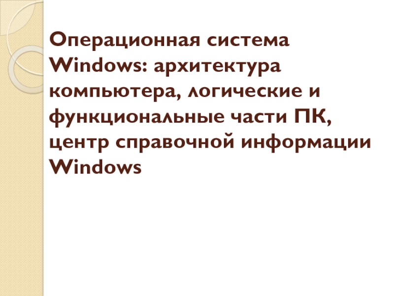 Слайд 4Операционная система Windows: архитектура компьютера, логические и функциональные части ПК, центр