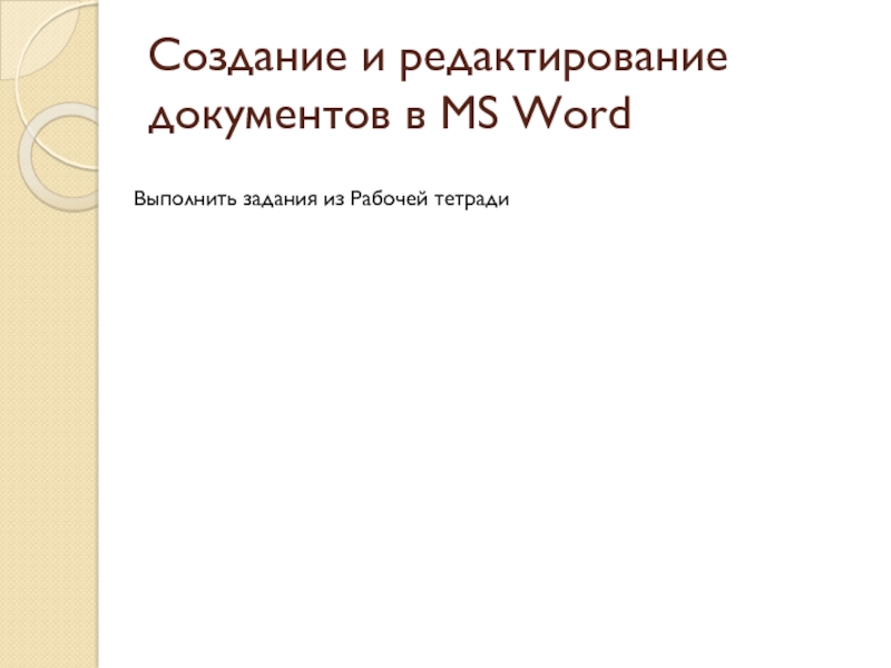 Слайд 14создание и редактирование документов в MS Word