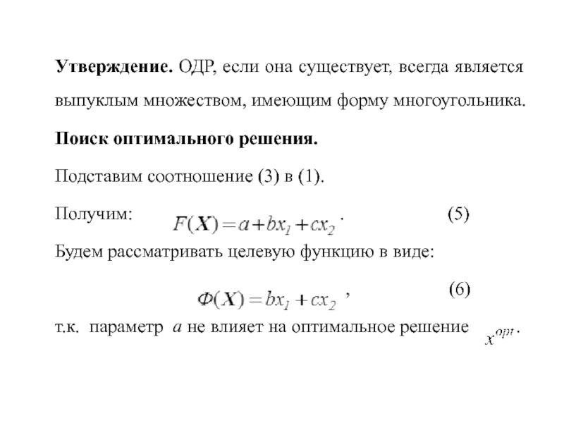 Утверждение. ОДР, если она существует, всегда является выпуклым множеством, имеющим форму