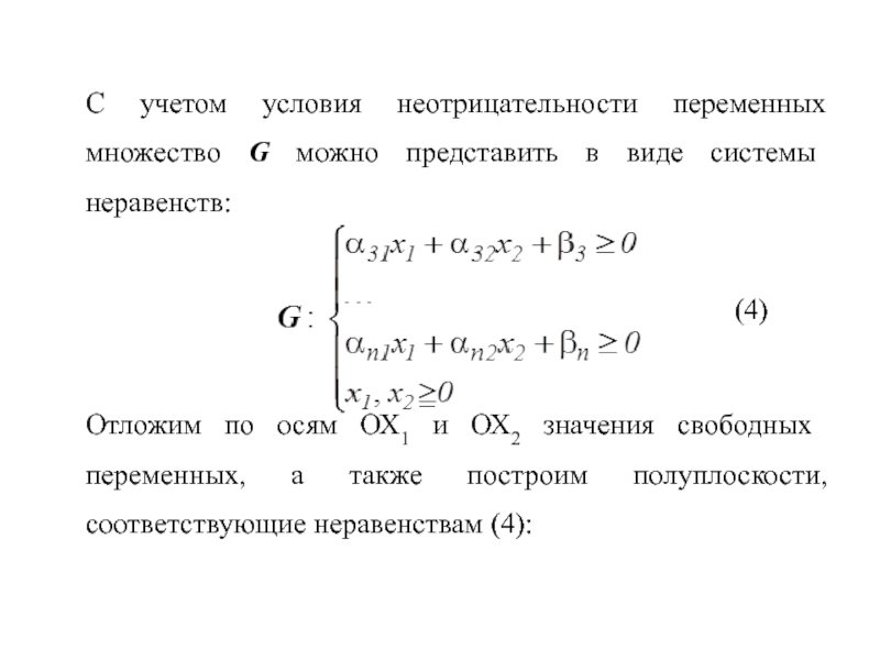 С учетом условия неотрицательности переменных множество G можно представить в виде