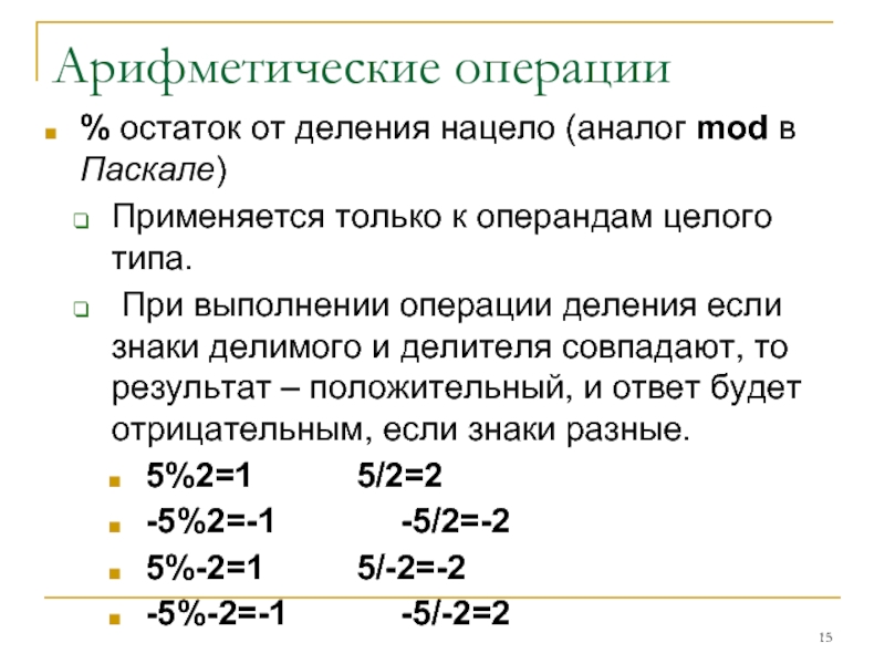 Слайд 13Арифметические операции