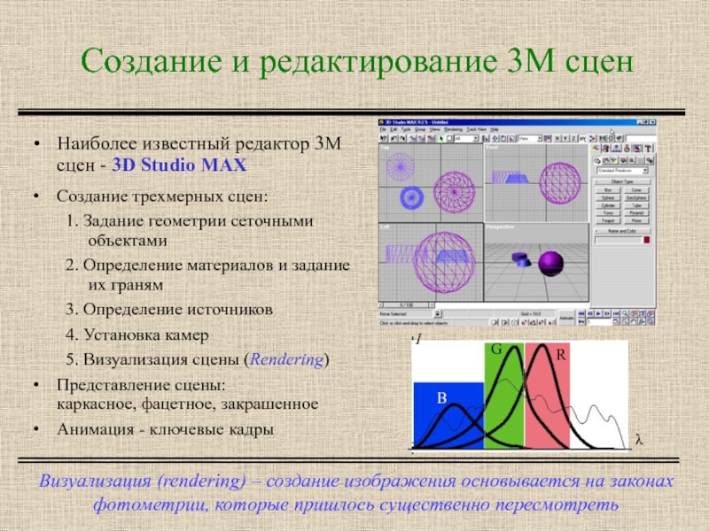 Наиболее известный редактор 3М сцен - 3D Studio MAX