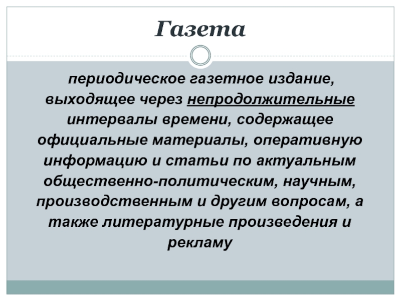 периодическое газетное издание, выходящее через непродолжительные интервалы времени, содержащее