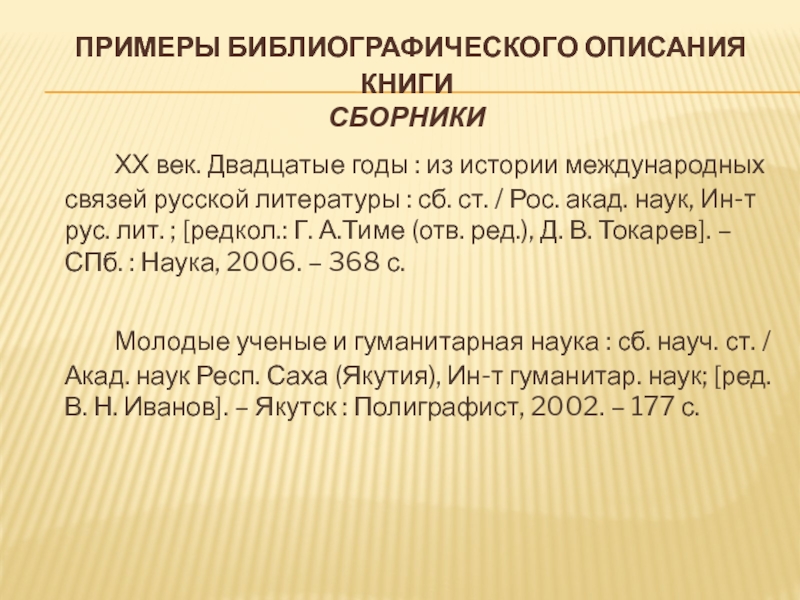 Слайд 23ПРИМЕРЫ БИБЛИОГРАФИЧЕСКОГО ОПИСАНИЯ