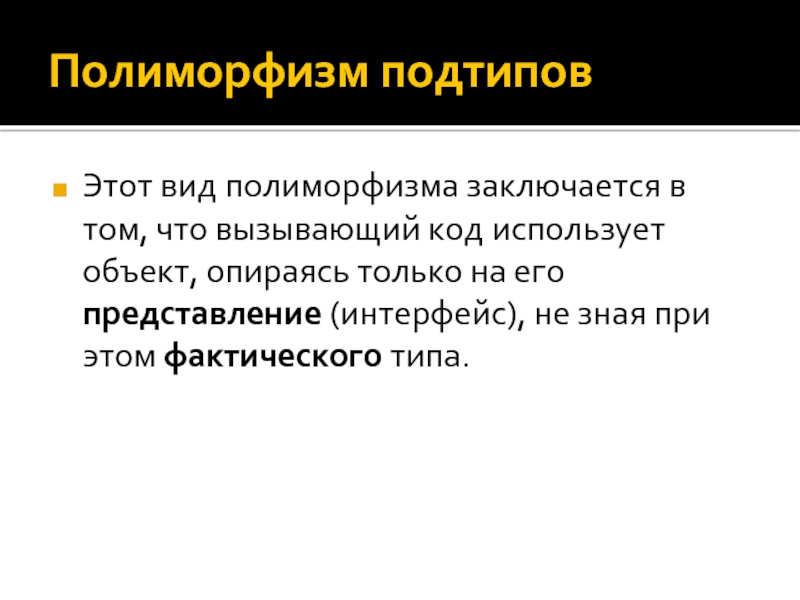 Этот вид полиморфизма заключается в том, что вызывающий код использует