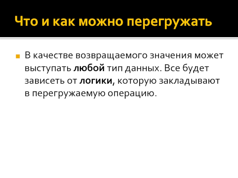 тип данных. Все будет зависеть от логики, которую закладывают в перегружаемую операцию.