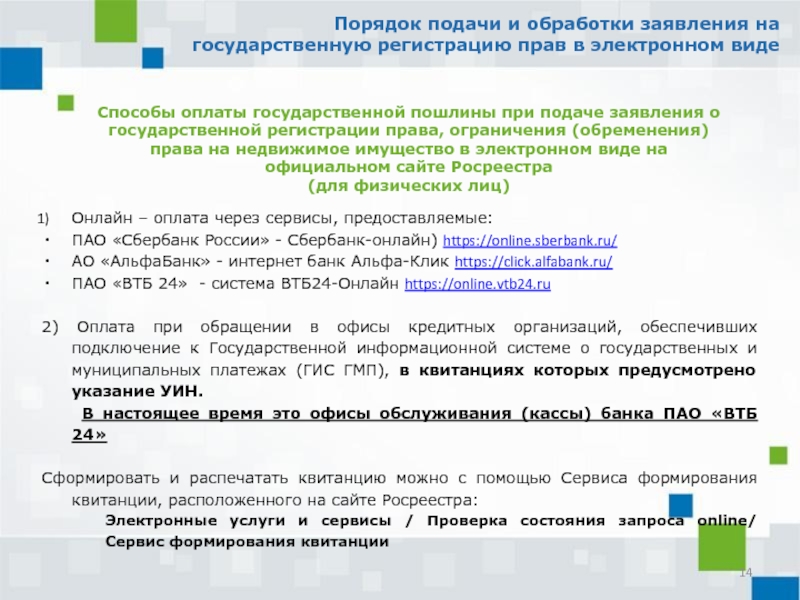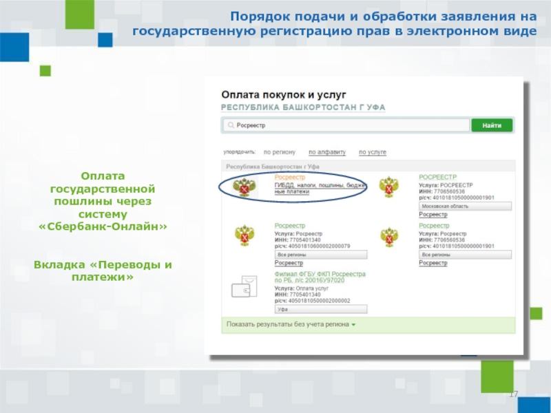Способы оплаты государственной пошлины при подаче заявления о государственной регистрации права, ограничения (обременения) права на недвижимое имущество в электронном виде на официальном сайте Росреестра