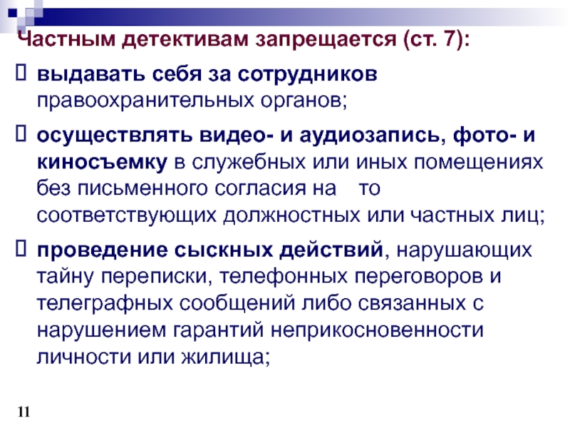Частным детективам запрещается