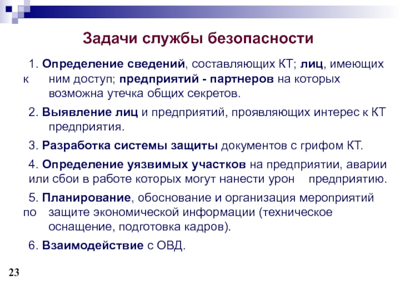 Задачи службы безопасности