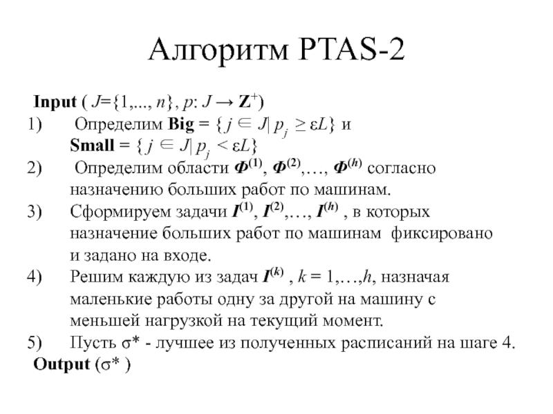 Big = { j ∈ J| pj ≥ εL} и Small = { j ∈ J| pj < εL}
