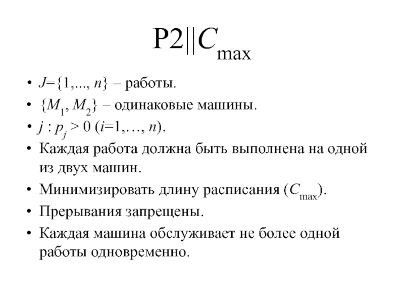 Решим каждую из задач I(k) , k = 1,…,h, назначая маленькие работы одну за другой на машину с меньшей нагрузкой на текущий момент.