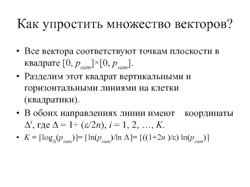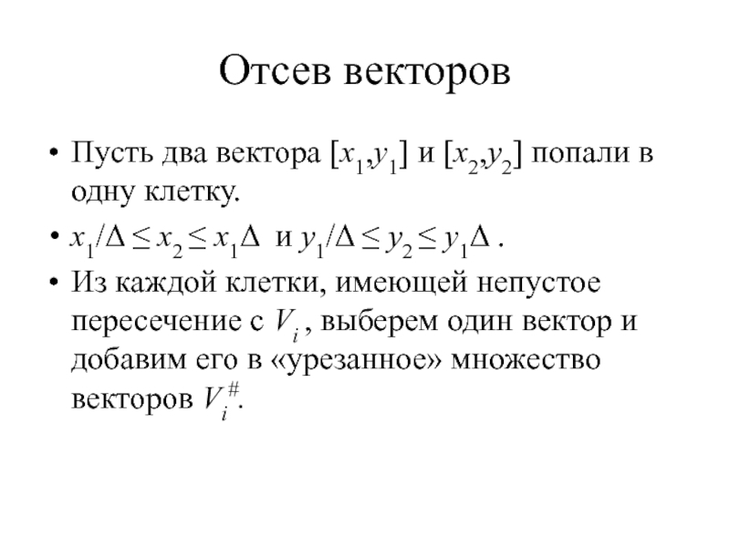 Из каждой клетки, имеющей непустое пересечение с Vi , выберем один вектор и добавим его в «урезанное» множество векторов Vi#.