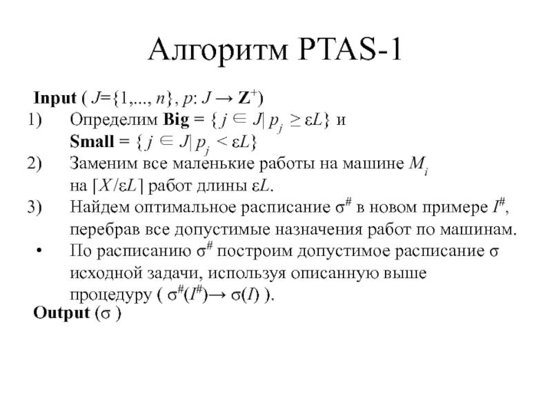 Алгоритма PTAS-1 – (1+ε)-приближенный алгоритм для