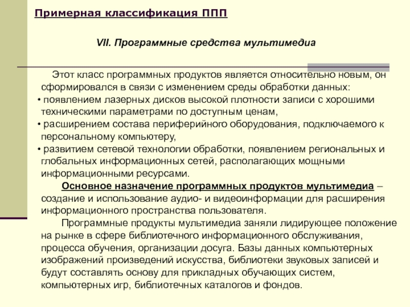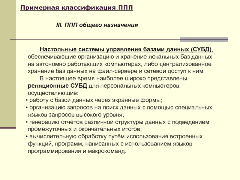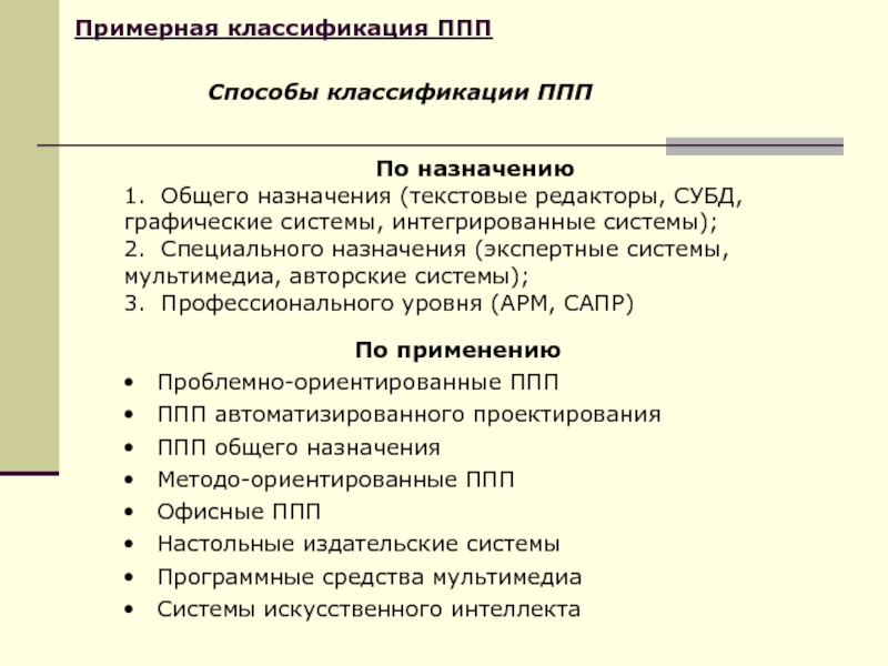 Программные продукты данного класса можно классифицировать по предметным областям применения: